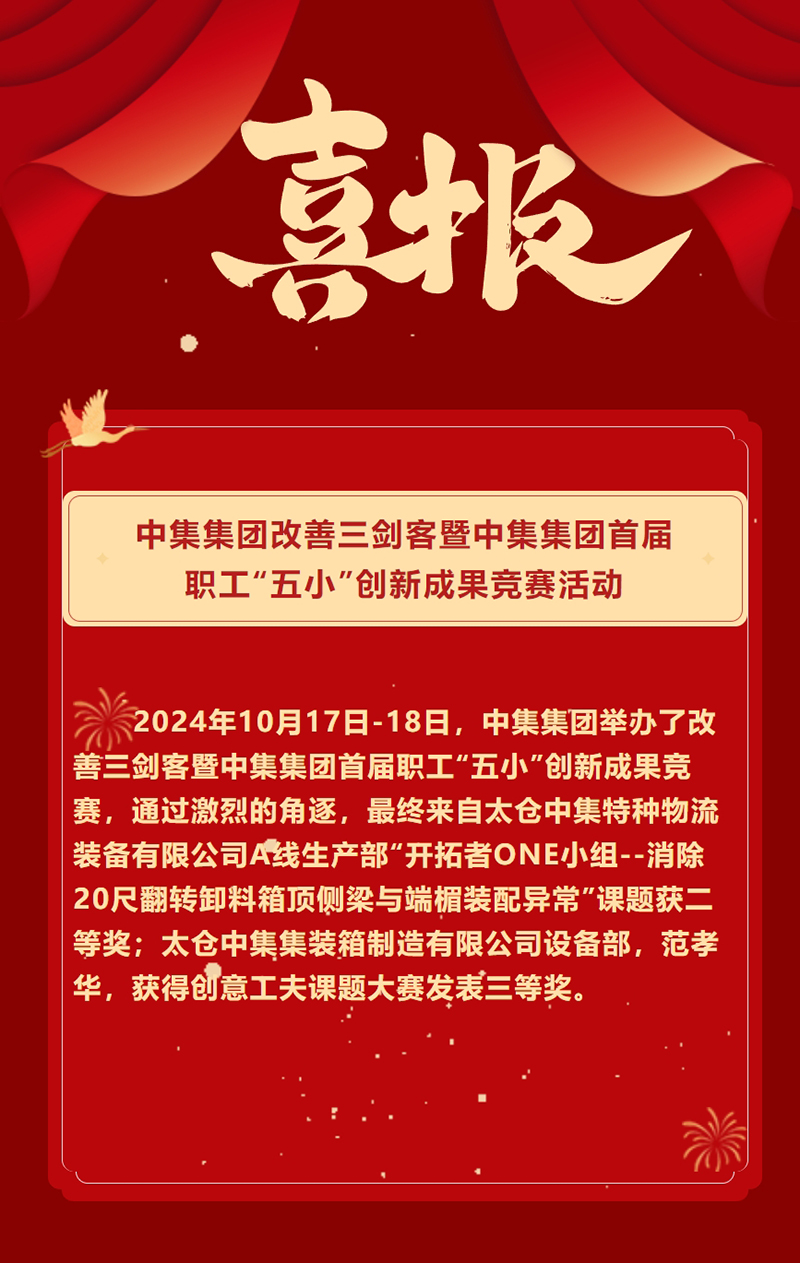 【集團榮譽】恭喜特箱公司A線生產部課題、標箱公司設備部范孝華分別獲集團課題及創(chuàng)意工夫二等獎、三等獎!
