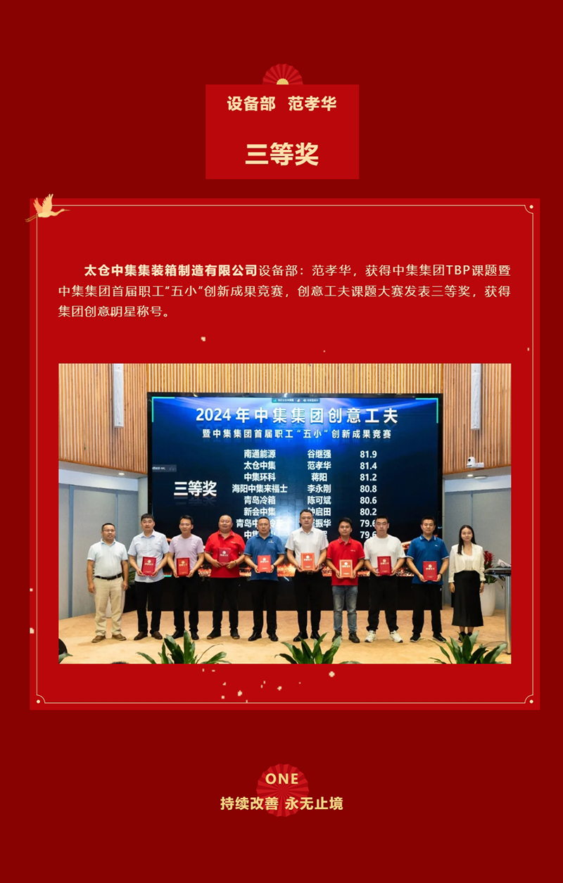 【集團(tuán)榮譽】恭喜特箱公司A線生產(chǎn)部課題、標(biāo)箱公司設(shè)備部范孝華分別獲集團(tuán)課題及創(chuàng)意工夫二等獎、三等獎!
